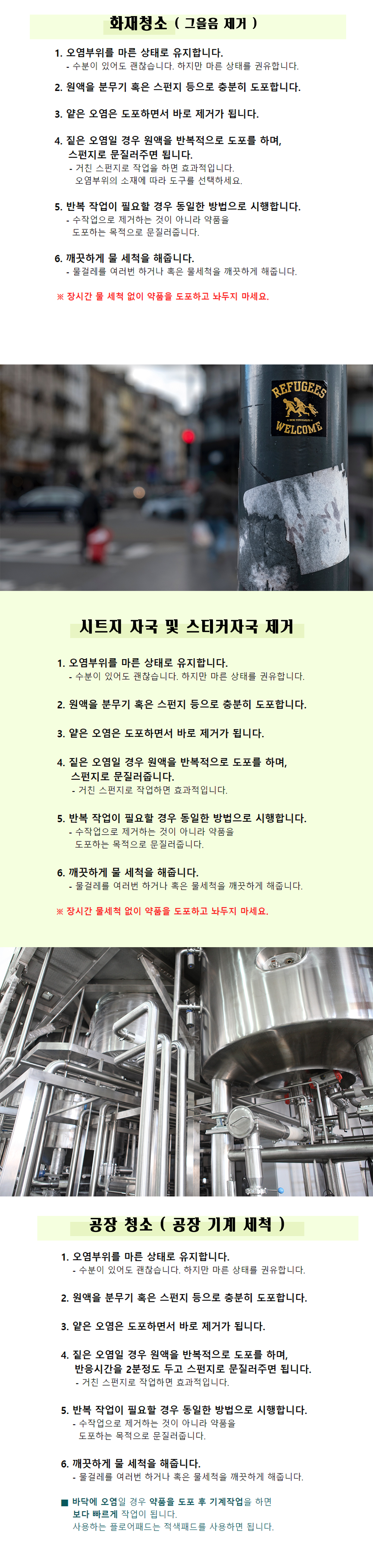 소재에 안전하고 작업자에게도 안전한 약품을 경험하세요.