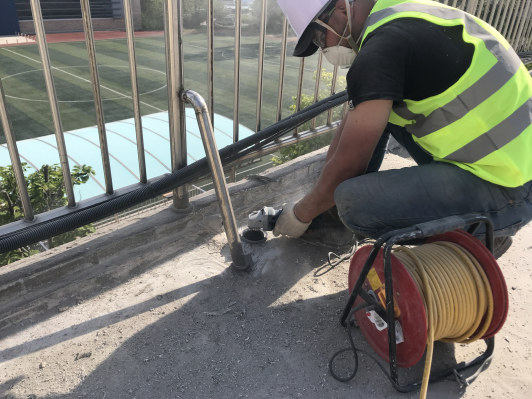 세척이 끝난 뒤 몰탈을 도포하기 위한 와이어매쉬 작업을 1차 진행 후 몰탈 작업합니다. 몰탈이 어느정도 굳은 뒤에 미장작업이 진행합니다.