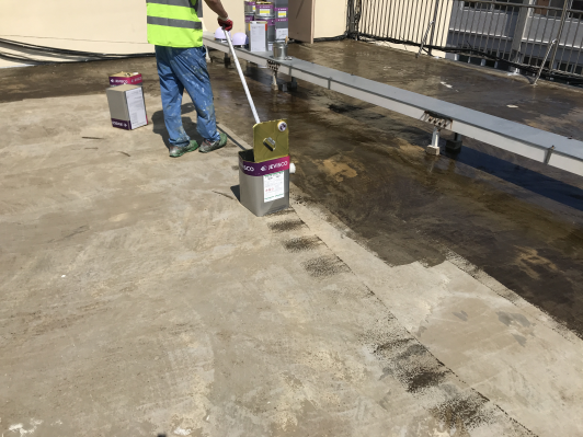 몰탈이 완전하게 굳은 뒤 방수제의 하도를 도포합니다. 하도는 충분히 흥건하게 도포를 합니다.