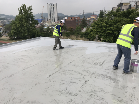 중도는 방수제의 실질적인 기능을 하는 자재입니다. 중도는 2회 작업을 진행을 합니다. 현장에 요구에 따라 반복해서 진행을 할 수 있습니다.