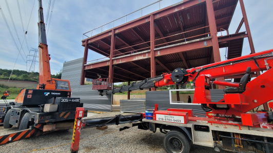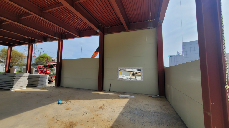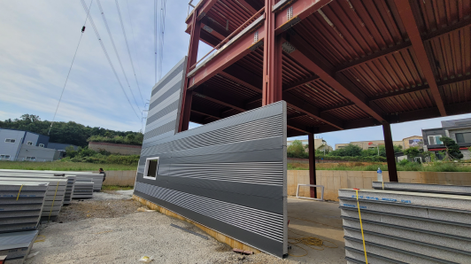 마무리 공정에 해당되는 마감 작업입니다. 판넬 마감시 단열과 누수방지를 잘해야됩니다. 꼼꼼한 시공으로 마무리합니다.