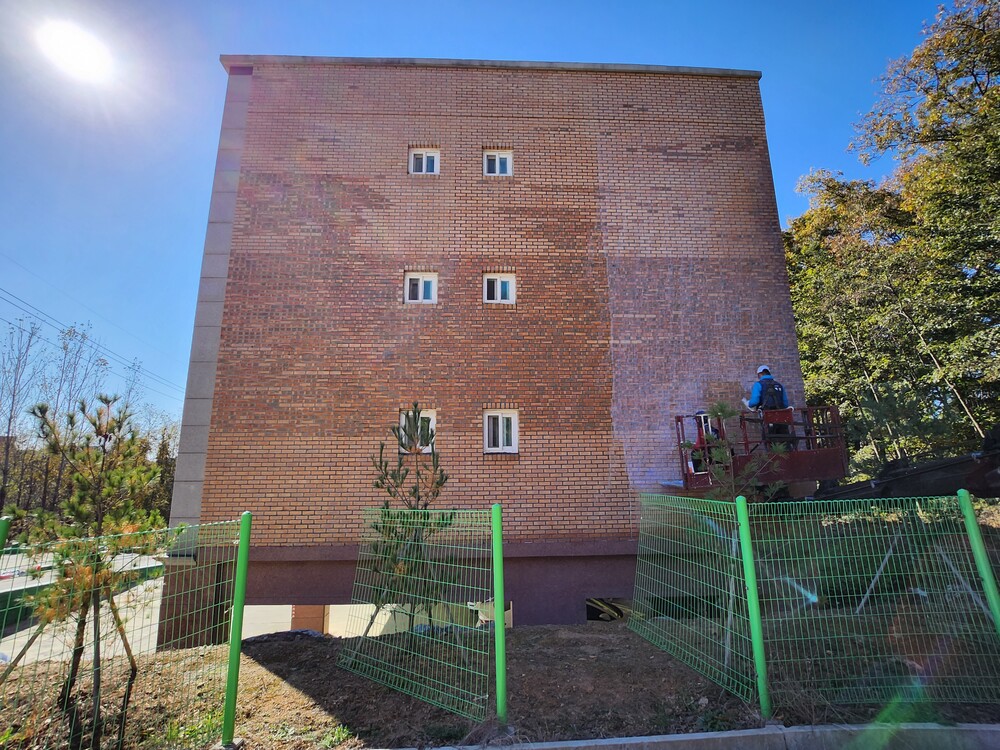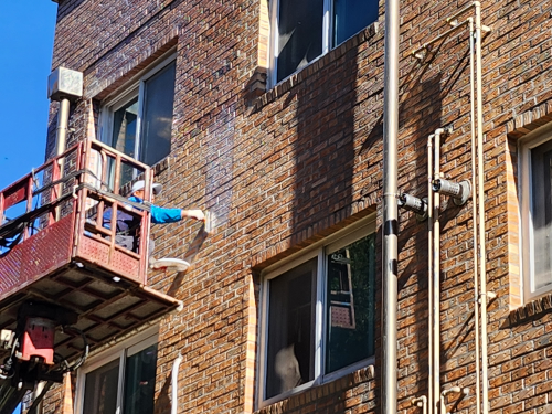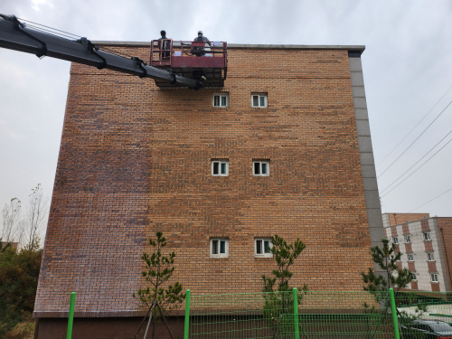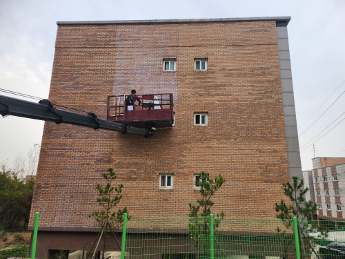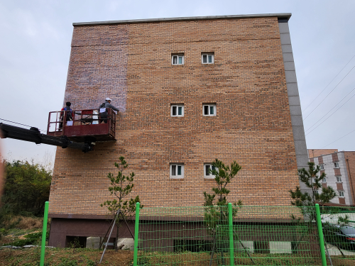 벽돌의 안보이는 크랙을 완벽하게 보수하기 어렵습니다. 그래서 벽돌을 전체 코팅처리합니다.